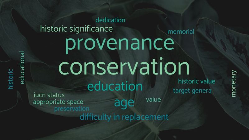 Another difficult challenge in collection management is allocating the right amount of resources and attention to important plant material. A system which gives each plant a score that represents the institutional importance of that plant material, will assist staff on how they approach their work. The way plants are “ranked” will be derived from the mission of the institution and based on its focus.
